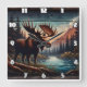 Majestic Moose by Tranquil Mountain Stream Square Wall Clock