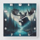 Majestic Moose Overlooking Serene River Landscape Square Wall Clock