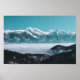 Landscape photograph of a stunning winter scenery with majestic mountains rising above clouds.