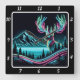 Majestic Neon Deer Wall Art Square Wall Clock