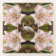 Personalise (change the images) on photography of a Amaryllis Candy Cane (or double Hippeastrum) flower and in the Middle a White Peacock on Zazzle Glass Coaster