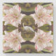 Personalise (change the images) on photography of a Amaryllis Candy Cane (or double Hippeastrum) flower and in the Middle a White Peacock on Zazzle Stone Coasters.