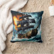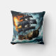Majestic Pirate Ship Battling Stormy Seas at Dawn Cushion