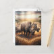 A vibrant painting depicting a herd of rhinos peacefully grazing in a lush field, showcasing their natural beauty and strength in their habitat.