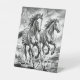 Majestic Running Horses Black and White Sketch Pedestal Sign