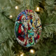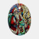 Majestic Stained Glass Santa and Reindeer Ceramic Ornament