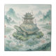 Majestic Turtle Pagoda Ink Art Ceramic Tile