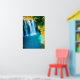 A majestic waterfall in the jungle, with crystal-clear water cascading into a lush green paradise. A breathtaking and refreshing escape.