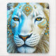 White and gold jewelled lion fantasy ai art. intricate details, royal vibes.