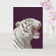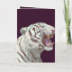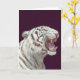 A striking illustration of a white tiger in full roar, set against a clean dark background. Ideal for unique, elegant greeting cards that impress.