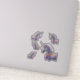A regal white unicorn with a sparkly horn and bright, bold rainbow mane stands proud. Designed for unicorn lovers, fantasy fans, and anyone who adores ethereal vibes. Set of five stickers features two small mirrored unicorns, two medium mirrored unicorns and one large unicorn sticker. Perfect as a gift, to accessories and decorate with magic.