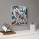 This image features a majestic white wolf standing on a rocky terrain amidst a serene winter forest. The wolf's thick fur is beautifully detailed, capturing the essence of its wild and untamed nature. The background showcases tall evergreen trees dusted with snow, adding to the tranquil and mystical atmosphere of the scene. This captivating artwork is perfect for nature enthusiasts and those who appreciate the beauty of wildlife.