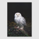 Animal portrait photograph of majestic snowy owl standing on a branch.