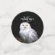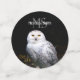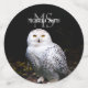 Animal portrait photograph of majestic snowy owl standing on a branch with a personalizable custom name monogram above.