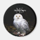 Majestic winter snowy owl monogram custom name magnet