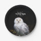 Animal portrait photograph of majestic snowy owl standing on a branch with a personalizable custom name monogram above.