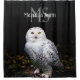 Animal portrait photograph of majestic snowy owl standing on a branch with a personalizable custom name monogram above.