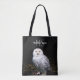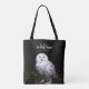 Animal portrait photograph of majestic snowy owl standing on a branch with a personalizable custom name monogram above.