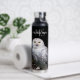 Animal portrait photograph of majestic snowy owl standing on a branch with a personalizable custom name monogram above.