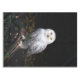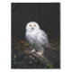 Animal portrait photograph of majestic snowy owl standing on a branch.