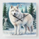 This image features a striking white wolf standing in a snowy forest. The wolf's thick fur is beautifully detailed, capturing the essence of its majestic and powerful presence. Surrounding the wolf are snow-covered trees and delicate snowflakes, adding to the serene and enchanting winter scene. The background showcases a clear, starry night sky, enhancing the overall magical and tranquil atmosphere of the image. This captivating depiction of a wolf in its natural habitat makes for a stunning and unique clock design.