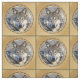 Beautiful Grey Wolf portrait surrounded by bronze / gold /brown colour and framed by deep green lines/