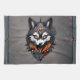 Majestic wolf head, finished in a deep, dark shade of grey. The wolf wears an elaborate headdress made up of intricate, tribal-inspired patterns.The rose symbolises both beauty and transience, perfectly complementing the powerful image of the wolf. Overall, the design conveys a harmonious balance between strength and grace, with the combination of dark grey and bright orange, as well as the floral elements, creating a captivating visual narrative