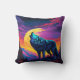Majestic Wolf Howling Under Vibrant Moonlight Cushion