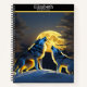Majestic wolves howling at a bright moonlit night notebook
