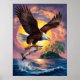 Majesty in Flight: Eagle Soaring Above Fish Poster