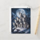 A pack of majestic wolves stands proudly on a mountain peak under the glowing light of a full moon.
