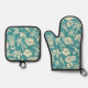Makapuu Beach Hawaiian Batik Teal Oven Mitt & Pot Holder Set