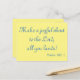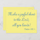A postcard offering inspirational praise, this design features "Make a joyful shout to the Lord, all you lands!" Psalm 100:1 is written in lovely blue font on a yellow background.  Eye-catching and lovely, your loved ones with enjoy this greeting.
