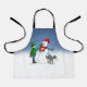 Christmas Apron with an illustration of a boy and dog building a snowman.