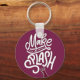 Round button keychain features fun text "Make a Splash" and the top of a wine bottle. Keychains make memorable gifts for family and friends or create one for yourself.