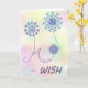 Cute card with three flowers, colourful background. Text is make a wish. The card is blank inside for you to personaliza with your own words.