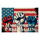 A vivid street-art style image where three bold fists rise against a vintage American flag, echoing a timeless call for freedom, courage, and unity — a visual anthem of resistance and hope.
