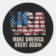 A distressed and grunge-style "Make America Great Again" sticker. Perfect for any true conservative, this sticker is a bold statement of your values. Stick it on your car, laptop, or anywhere you want to show your support.