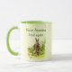 The bunny rabbit on this mug has a serious message to convey: Make America Kind Again. You can easily change or remove the text.