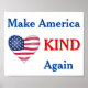 Women's March 2019 "Make America Kind Again" Poster with American heart flag. Anti-Trump pro kindness, peace, human rights, women's rights and democracy.