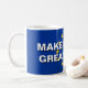 Blue and yellow star flag of Europe. MAKE EUROPE GREAT AGAIN. Add your own funny quote, parody or humourous saying. Custom united Euro / Europa cup design. Merchandise for political party, politics, fans, countries, business, eurosceptics, pro or anti, exit, nexit, frexit, grexit, brexit etc. Change quantity to get the cheapest bulk price. 11oz novelty drinkware for home of office.