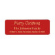 Custom, personalised, festive red, faux gold typography / script, Merry Christmas / Happy Holidays / Season's Greetings return address label. Simply enter the family name / bride & groom's / wife & husband's names, and address, to customise.