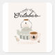 A teapot and cup with the words make it an October to remember. This design looks really effective on these Stickers