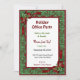 Festive Christmas office invitations set the mood for this years party. Customisable information is framed with a scrolled border, decorative bows and candy cane corner accents. Lovely rich green and white snowflake background that is repeated on the back area as well. All text is ready for you to customise.