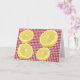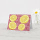 The perfect encouragement greeting card to let people know you are thinking of them. Sometimes life gives you lemons. Hang in there and make lemonade. Bright sliced lemons on the red gingham check.