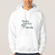 "make money not friends" with blue and black colours on a white hooded sweatshirt