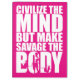 “Civilise the mind, but make savage the body.” - This is actually an ancient Chinese saying, but Mao Zedong used it in one of his speeches. Check it: "Physical education not only strengthens the body but also enhances our knowledge. There is a saying: Civilise the mind and make savage the body. This is an apt saying. In order to civilise the mind one must first make savage the body. If the body is made savage, then the civilised mind will follow. Knowledge consists in knowing the things in the world, and in discerning their laws. In this matter we must rely on our body, because direct observation depends on the ears and eyes, and reflection depends on the brain. The ears and eyes, as well as the brain, may be considered parts of the body. When the body is perfect, then knowledge is also perfect. Hence one can say that knowledge is acquired indirectly through physical education. Physical strength is required to undertake the study of the numerous modern sciences, whether in school or through independent study. He who is equal to this is the man with a strong body; he who is not equal to it is the man with a weak body. The division between the strong and the weak determines the area of responsibilities each can assume." Great for athletes and enthusiasts of lifting, bodybuilding, weightlifting, powerlifting, strongman etc.