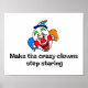 Make the crazy clowns stop staring! - Funny and humorous quote and saying with an attitude. Crazy and weird humor about clowns. Fear of Clowns: Coulrophobia