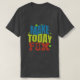 This black T-shirt features a vibrant and motivational design with the text "MAKE TODAY FUN" in bold, colourful letters. The word "MAKE" is in blue, "TODAY" is in green, and "FUN" is in red, with small green stars scattered around the text. This T-shirt is perfect for adding a touch of positivity and enjoyment to your day.