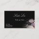 An elegant business card for make-up artist or anyone in the cosmetics or beautician industry. Business cards shows a photograph of makeup brushes in the corner along with some make-up pots of eyeshadow.